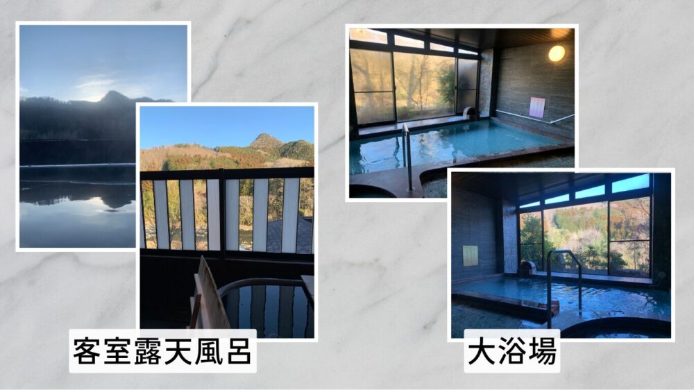 部屋の露天風呂と大浴場で疲れた身体をリフレッシュ